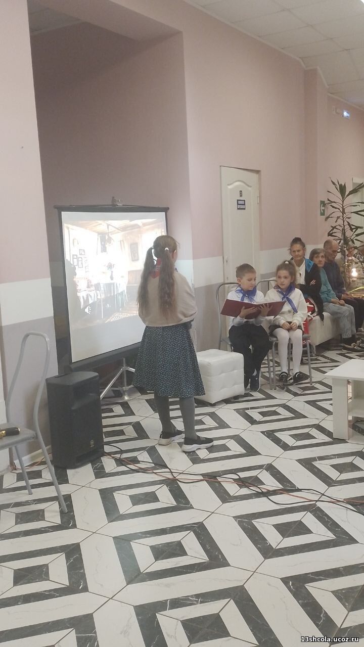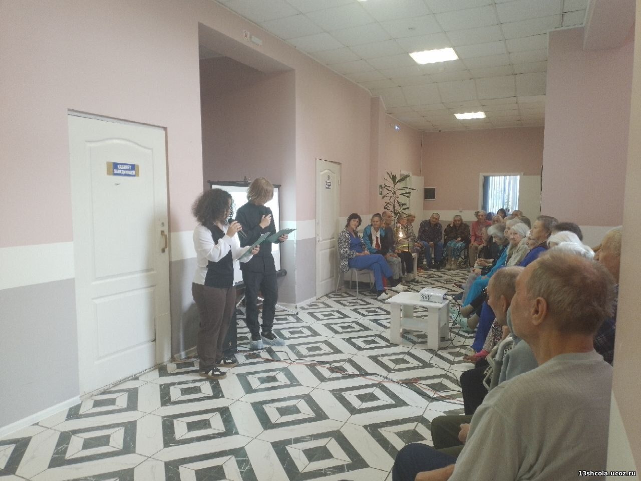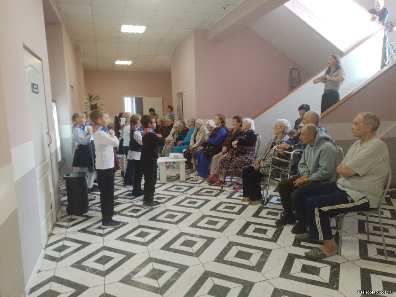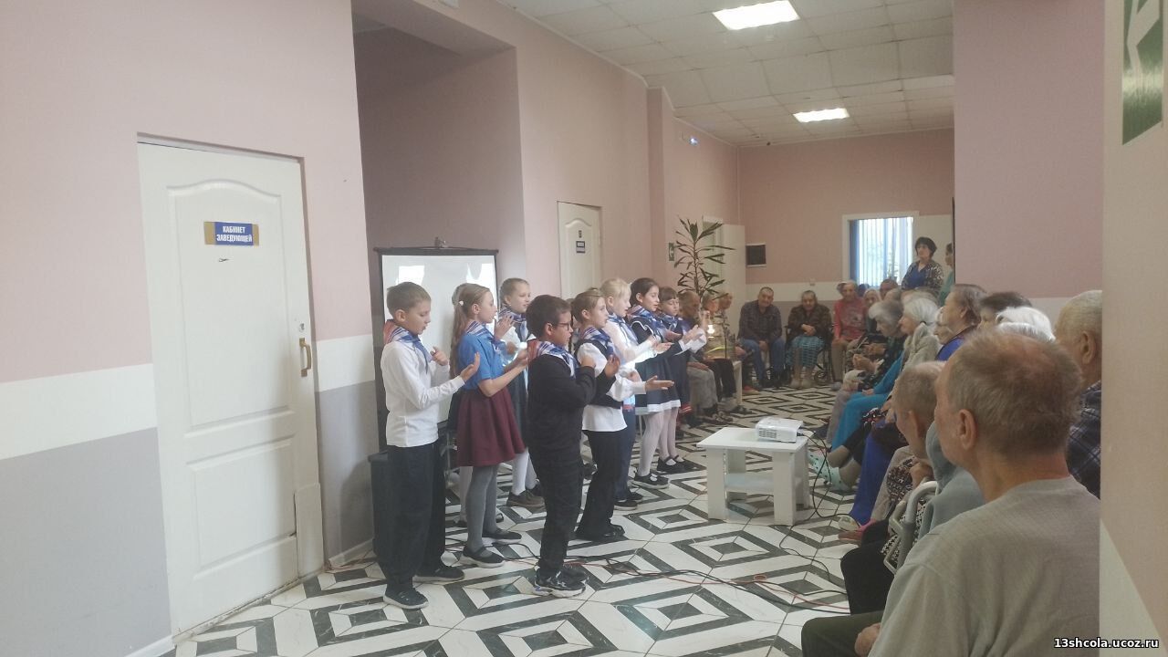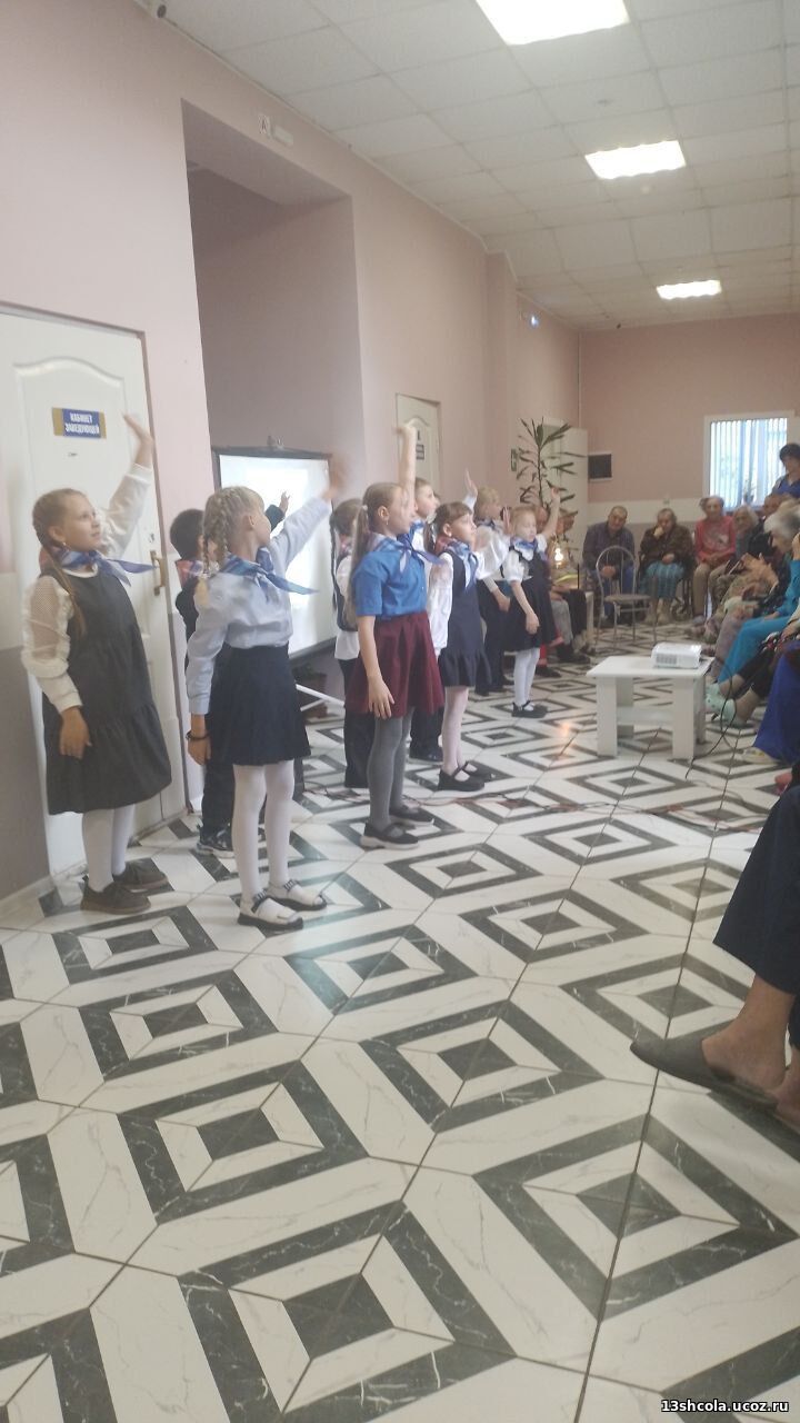 Мы чествуем людей, вошедших в пору золотой осени своей жизни, благодарим их за мудрость и тепло, за жизненный опыт, которым они так щедро делятся с молодыми. В этот день ребята из 3Г класса и школьный театр "Мандаринки" отправились в гости к пожилым людям, нахоящимся в центре социальной защиты населения. Третьеклассники под руководством Ватлецовой Кристины Вадимовны подготовили целую концертную программу: исполнили танец, песню, читали стихи, показали забавную сценку "В парке аттракционов". Также устроили музыкальную игру "Угадай фильм по песне". Школьный театр порадовал зрителей спектаклем "А зори здесь тихие". Встреча получилась очень тёплой и душевной. После выступления юные артисты подарили бабушкам и дедушкам открытки и пообщались с ними. Директор дома престарелых пригласила нас приезжать ещё. Выражаем благодарность Дмитрию Андреевичу Фартушняку за помощь в перевозке и установке аппаратуры.