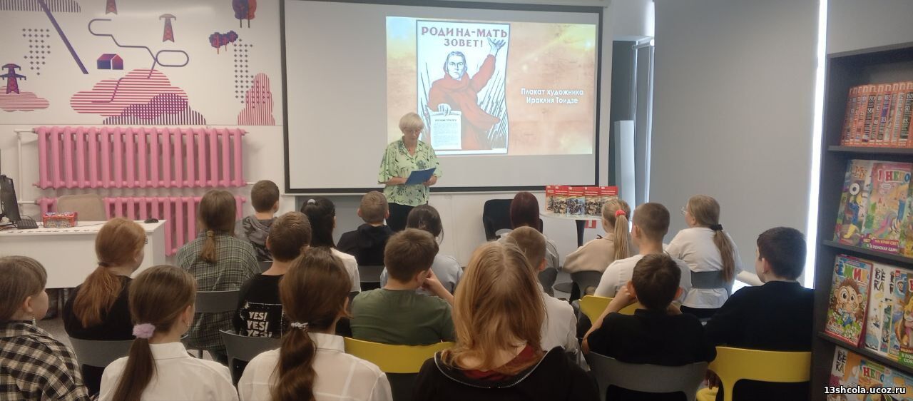 23 октября в рамках внеурочной деятельности мы всем нашим классом отправились в детскую библиотеку №7 на очередное познавательное мероприятие. В уютной библиотеке с нами провели занятие по теме «Война глазами художников». Библиотекарь показывала и рассказывала о художниках и их картинах о военном времени. В основном, в картинах были отражены голод, страх и переживания людей. В своих произведениях художники как будто передавали свои чувства нам. После беседы нас пригл