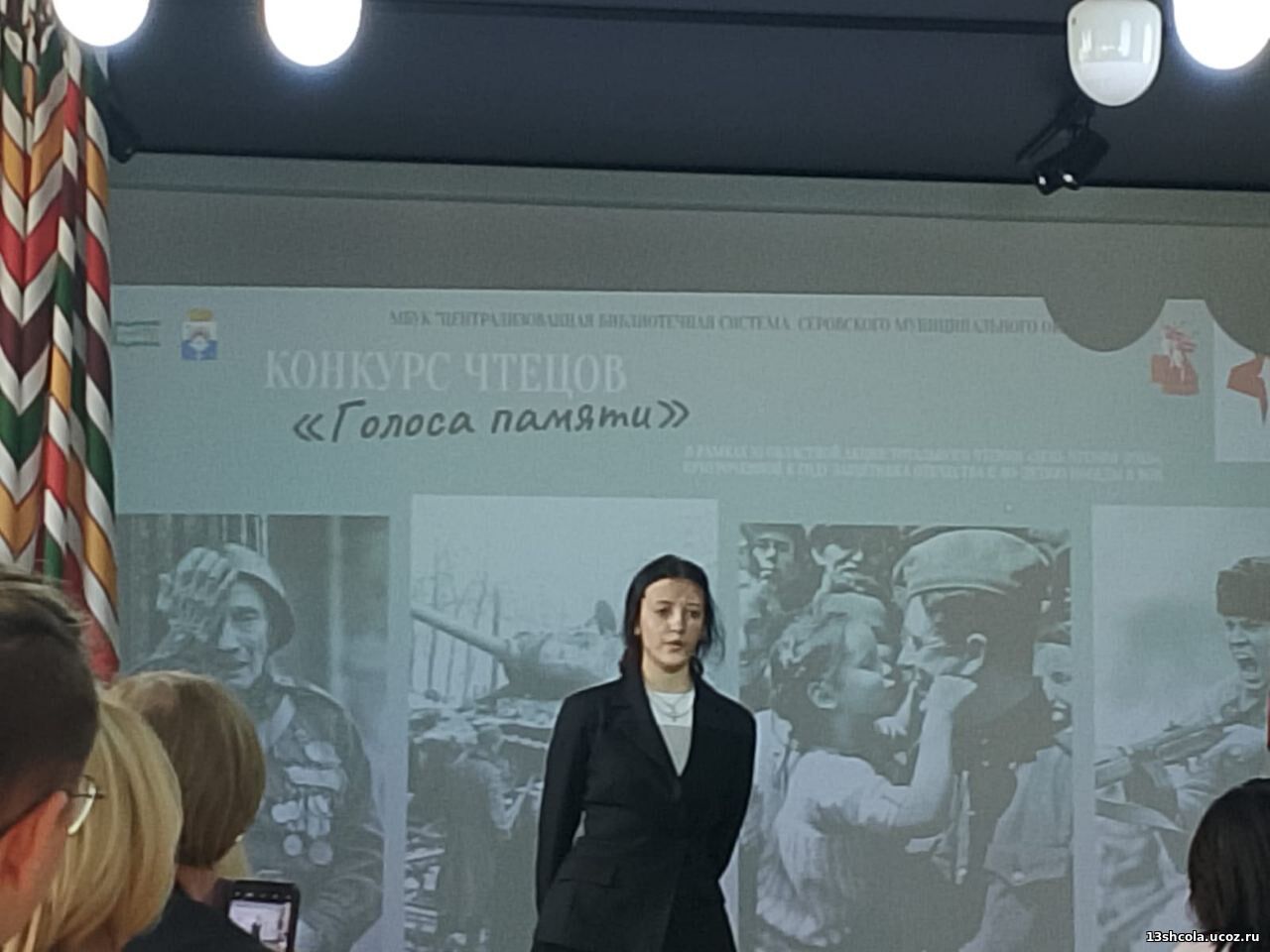 2 октября 2025 года ученики нашей школы – Саликаева Кристина, Первов Станислав, Седов Александр и Галкина-Скурихина Дарья – приняли участие в конкурсе чтецов "Голоса памяти", посвященном 80-летию Победы в Великой Отечественной войне. Организатором мероприятия выступила МБУК "Централизованная библиотечная система Серовского Муниципального округа". Конкурс проходил в торжественной обстановке, собрав чтецов и зрителей из различных учебных заведений. Ребята продемонстрировали высокий уровень подготовки и артистизма, представив на суд жюри произведения, проникнутые глубоким патриотизмом и уважением к подвигу советского народа в годы войны. Саликаева Кристина выступила со стихотворением "Баллада о красках". Первов Станислав представил проникновенное исполнение произведения "Враги сожгли родную хату". Седов Александр выразительно прочитал отрывок из поэмы "Василий Тёркин". Галкина-Скурихина Дарья завершила выступление школьной команды стихотворением Юлии Друниной "Зинка". Конкурс был разделен на три возрастные категории: 6-9 классы, 10-11 классы и студенты колледжей. Наши ученики соревновались с достойными соперниками, продемонстрировав не только талант, но и глубокое понимание трагических событий Великой Отечественной войны. Каждый участник получил сертификат, подтверждающий его вклад в сохранение памяти о героическом прошлом нашей страны.